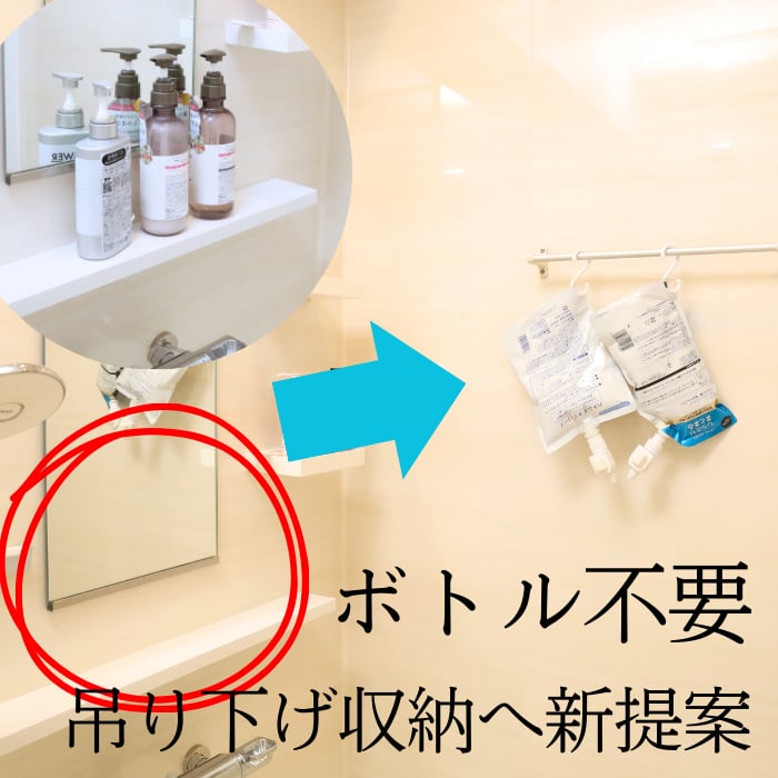 大容量タイプの詰替え用リフィルもぶら下げ可能ですが、